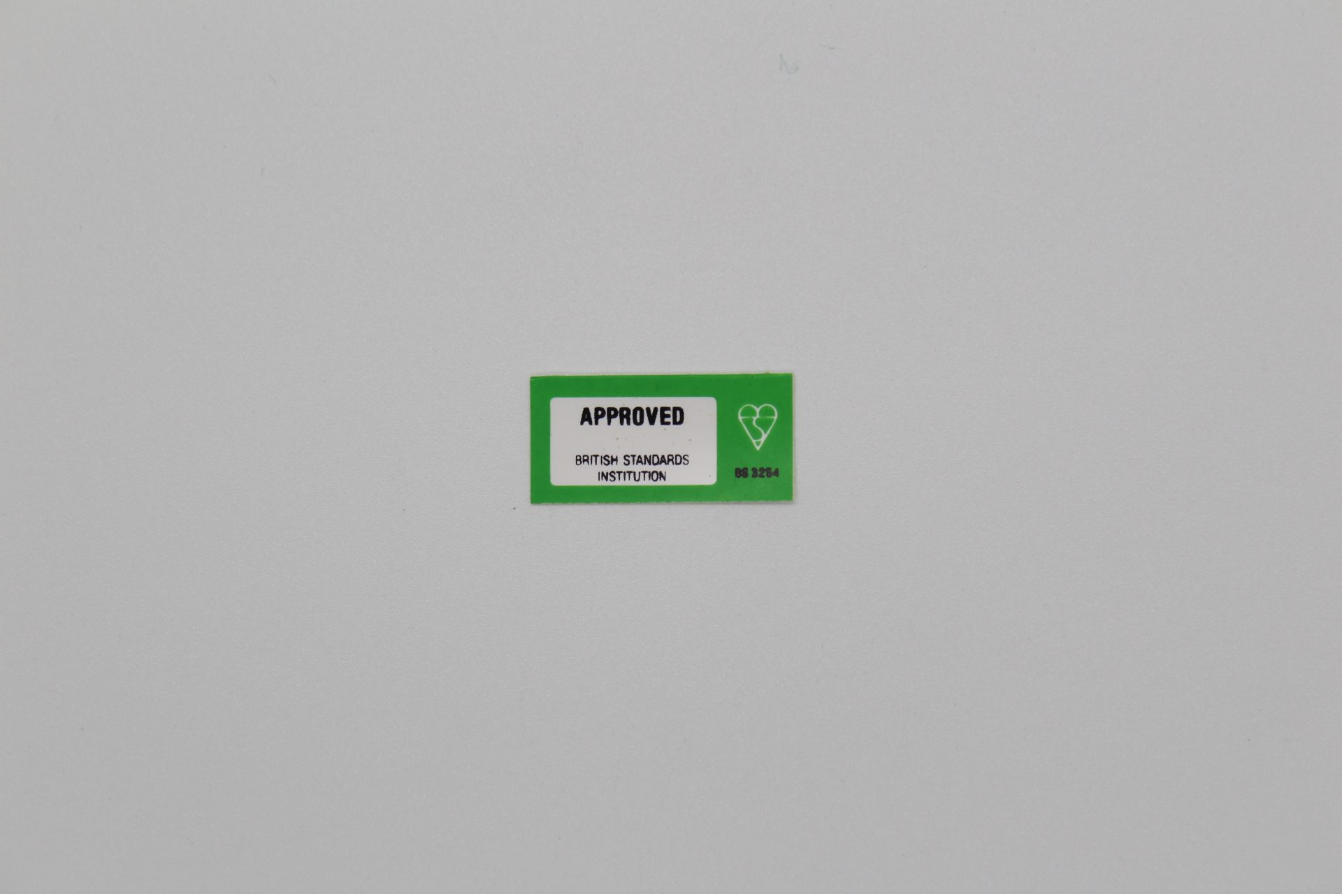 English seat belt safety sticker. Green / White British Standards Approval. 12 x 21 mm